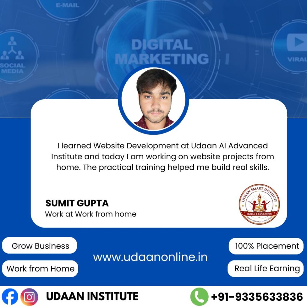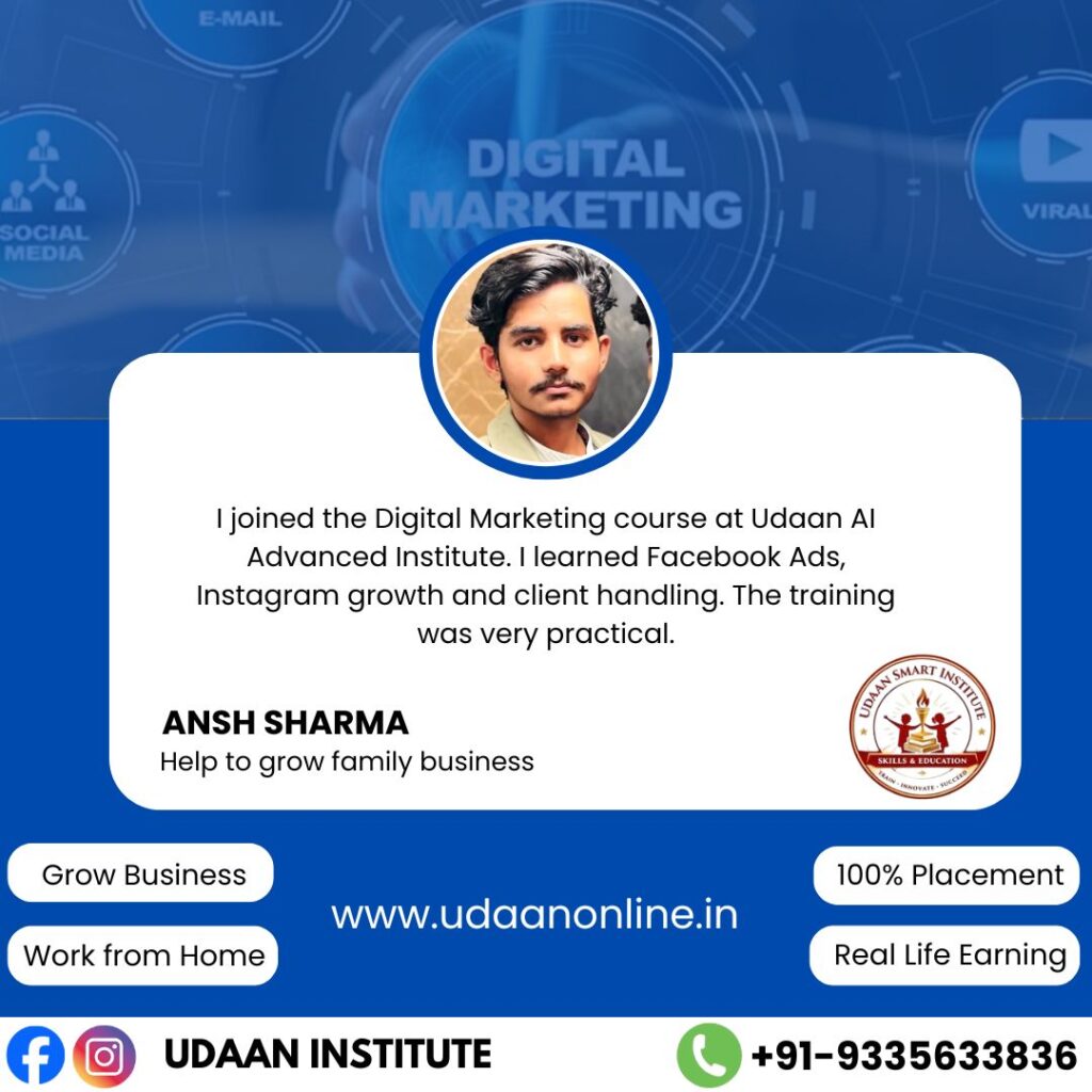 Udaan is the best institute for Digital Marketing in Kannauj, providing practical training, live projects, and career guidance to help students build a successful future.